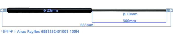 • 대체 가스스프링의 튜브의 지름은 22mm 대신 23mm 입니다.