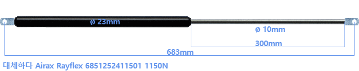• 대체 가스스프링의 튜브의 지름은 22mm 대신 23mm 입니다.