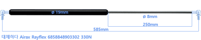 대체 가스스프링의 튜브의 지름은 20mm 대신 19mm 입니다.