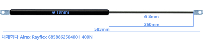 Airax Rayflex 6858862504001 400 뉴턴 의 대체 가스스프링. 아일렛의 두께는 10mm이고 구멍 직경은 8.1mm입니다. 브랜드: HAHN, 스타빌루스