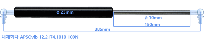 대체 가스스프링의 튜브의 지름은 22mm 대신 23mm 입니다.