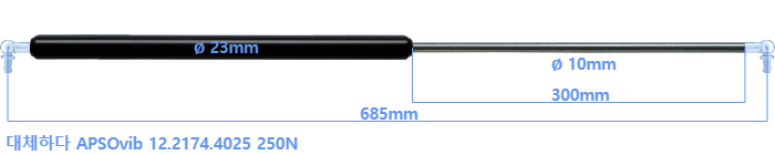 대체 가스스프링의 튜브의 지름은 22mm 대신 23mm 입니다.