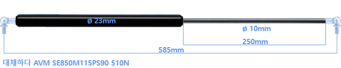 대체 가스스프링의 튜브의 지름은 22mm 대신 23mm 입니다.