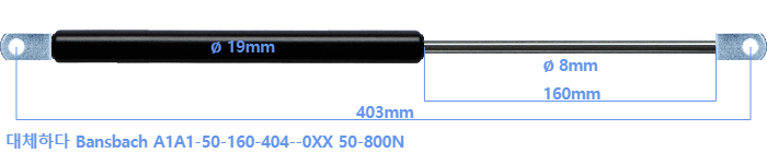 Bansbach A1A1-50-160-404--0XX 50-800 뉴턴 의 대체 가스스프링. 아일렛의 두께는 10mm이고 구멍 직경은 8.1mm입니다. 브랜드: HAHN, 스타빌루스