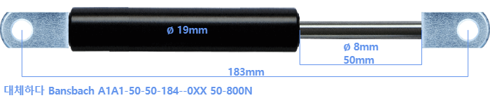 Bansbach A1A1-50-50-184--0XX 50-800 뉴턴 의 대체 가스스프링. 아일렛의 두께는 10mm이고 구멍 직경은 8.1mm입니다. 브랜드: HAHN, 스타빌루스