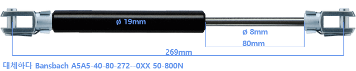 Bansbach A5A5-40-80-272--0XX 50-800 뉴턴 의 대체 가스스프링. 포크의 구멍 직경은 8.1mm입니다. 브랜드: HAHN, 스타빌루스