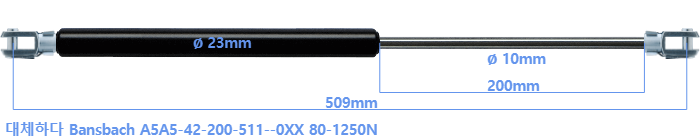 대체 가스스프링의 튜브의 지름은 22mm 대신 23mm 입니다.