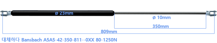 대체 가스스프링의 튜브의 지름은 22mm 대신 23mm 입니다.