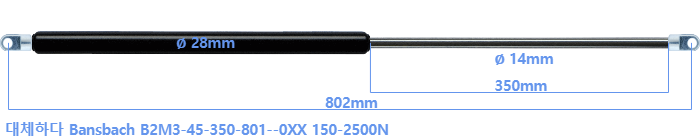 Bansbach B2M3-45-350-801--0XX 150-2500 뉴턴 의 대체 가스스프링. 아일렛의 두께는 10mm이고 구멍 직경은 10.1mm입니다. 브랜드: HAHN, 스타빌루스