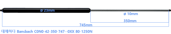 대체 가스스프링의 튜브의 지름은 22mm 대신 23mm 입니다.