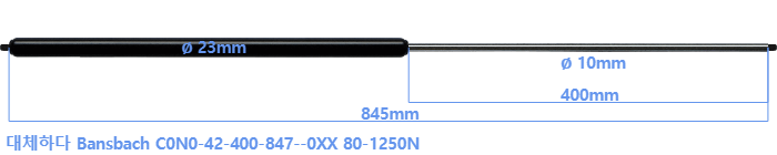 대체 가스스프링의 튜브의 지름은 22mm 대신 23mm 입니다.