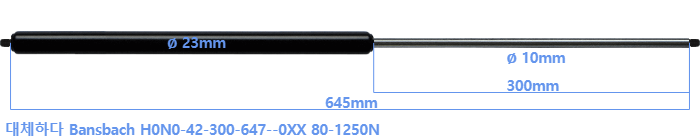 대체 가스스프링의 튜브의 지름은 22mm 대신 23mm 입니다.