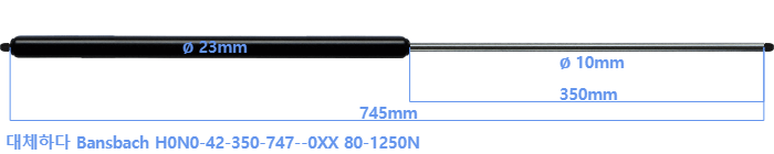 대체 가스스프링의 튜브의 지름은 22mm 대신 23mm 입니다.