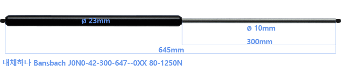 대체 가스스프링의 튜브의 지름은 22mm 대신 23mm 입니다.