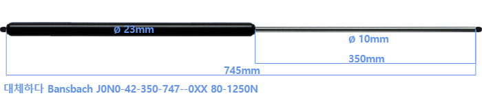 대체 가스스프링의 튜브의 지름은 22mm 대신 23mm 입니다.