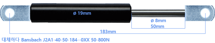 Bansbach J2A1-40-50-184--0XX 50-800 뉴턴 의 대체 가스스프링. 아일렛의 두께는 10mm이고 구멍 직경은 8.1mm입니다. 브랜드: HAHN, 스타빌루스
