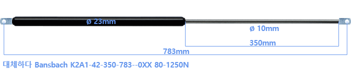 Bansbach K2A1-42-350-783--0XX 80-1250 뉴턴 의 대체 가스스프링. 아일렛의 두께는 10mm이고 구멍 직경은 8.1mm입니다. 브랜드: HAHN, 스타빌루스