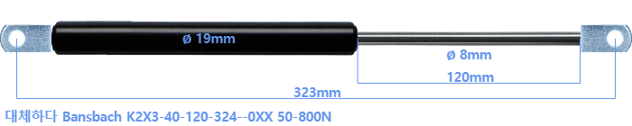 Bansbach K2X3-40-120-324--0XX 50-800 뉴턴 의 대체 가스스프링. 아일렛의 두께는 10mm이고 구멍 직경은 8.1mm입니다. 브랜드: HAHN, 스타빌루스