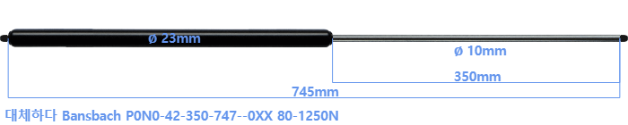 대체 가스스프링의 튜브의 지름은 22mm 대신 23mm 입니다.