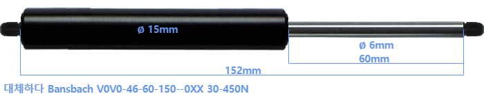 Bansbach V0V0-46-60-150--0XX 30-450 뉴턴 의 대체 가스스프링. 스레드: M5. 브랜드: HAHN, 스타빌루스