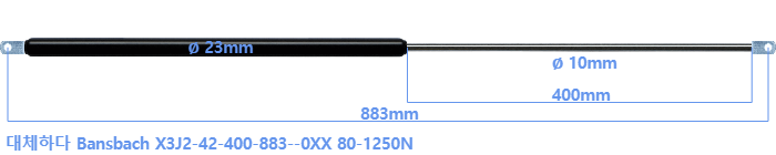 대체 가스스프링의 튜브의 지름은 22mm 대신 23mm 입니다.