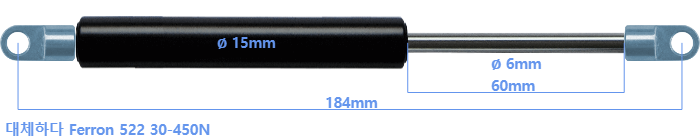 Ferron 522 30-450 뉴턴 의 대체 가스스프링. 아일렛의 두께는 3mm이고 구멍 직경은 6.1mm입니다. 브랜드: HAHN, 스타빌루스