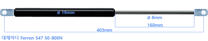 Ferron 547 50-800 뉴턴 의 대체 가스스프링. 아일렛의 두께는 10mm이고 구멍 직경은 8.1mm입니다. 브랜드: HAHN, 스타빌루스
