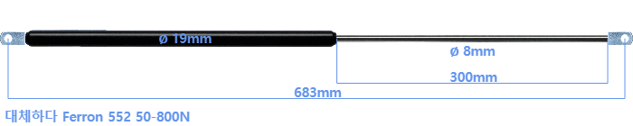 Ferron 552 50-800 뉴턴 의 대체 가스스프링. 아일렛의 두께는 10mm이고 구멍 직경은 8.1mm입니다. 브랜드: HAHN, 스타빌루스