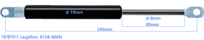 대체 가스스프링의 튜브의 지름은 18mm 대신 19mm 입니다.