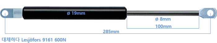 대체 가스스프링의 튜브의 지름은 18mm 대신 19mm 입니다.