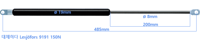 대체 가스스프링의 튜브의 지름은 18mm 대신 19mm 입니다.