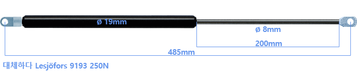 대체 가스스프링의 튜브의 지름은 18mm 대신 19mm 입니다.