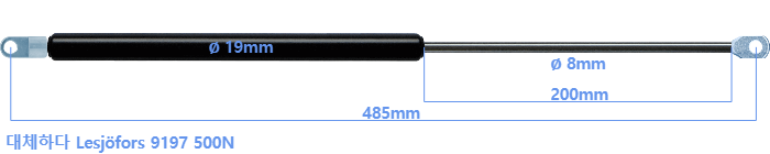 대체 가스스프링의 튜브의 지름은 18mm 대신 19mm 입니다.