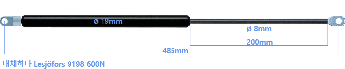 대체 가스스프링의 튜브의 지름은 18mm 대신 19mm 입니다.