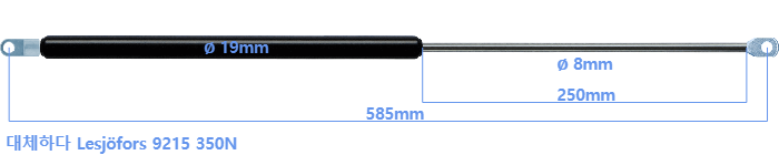 대체 가스스프링의 튜브의 지름은 18mm 대신 19mm 입니다.