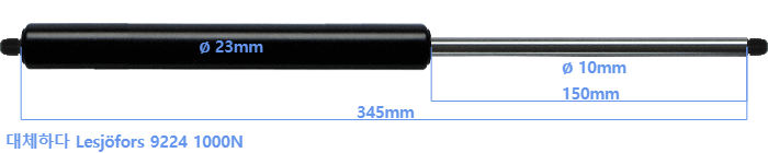대체 가스스프링의 튜브의 지름은 22mm 대신 23mm 입니다.