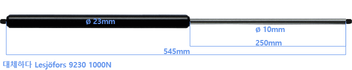 대체 가스스프링의 튜브의 지름은 22mm 대신 23mm 입니다.