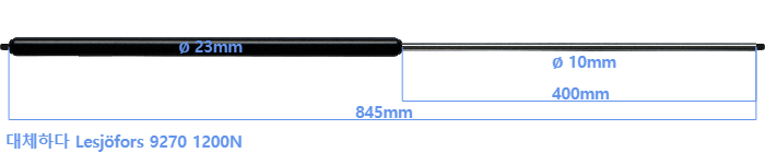 대체 가스스프링의 튜브의 지름은 22mm 대신 23mm 입니다.