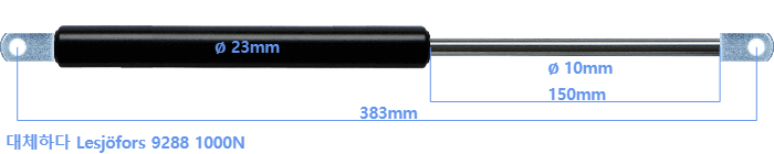 대체 가스스프링의 튜브의 지름은 22mm 대신 23mm 입니다.