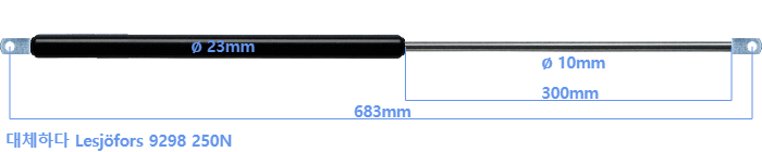 대체 가스스프링의 튜브의 지름은 22mm 대신 23mm 입니다.