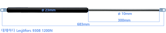 대체 가스스프링의 튜브의 지름은 22mm 대신 23mm 입니다.