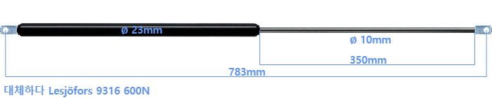 대체 가스스프링의 튜브의 지름은 22mm 대신 23mm 입니다.