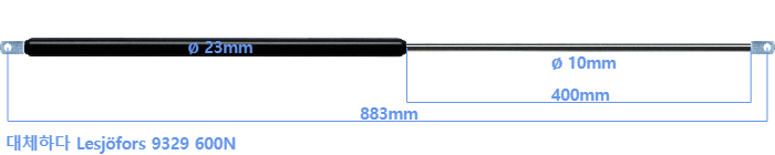 대체 가스스프링의 튜브의 지름은 22mm 대신 23mm 입니다.