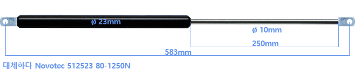 대체 가스스프링의 튜브의 지름은 21mm 대신 23mm 입니다.