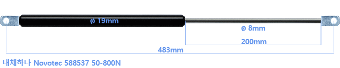 대체 가스스프링의 튜브의 지름은 18mm 대신 19mm 입니다.