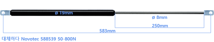 대체 가스스프링의 튜브의 지름은 18mm 대신 19mm 입니다.