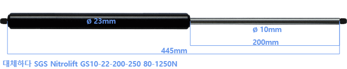 대체 가스스프링의 튜브의 지름은 22mm 대신 23mm 입니다.