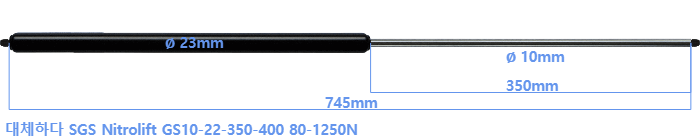 대체 가스스프링의 튜브의 지름은 22mm 대신 23mm 입니다.