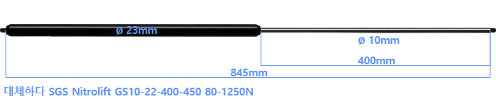 대체 가스스프링의 튜브의 지름은 22mm 대신 23mm 입니다.