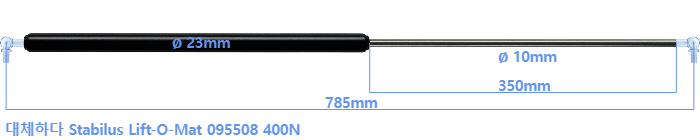 대체 가스스프링의 튜브의 지름은 22mm 대신 23mm 입니다.